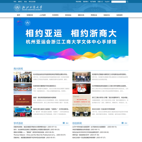 浙江工商大學坐落于風景秀麗的杭州,前身是創(chuàng)建于1911年的杭州中等商業(yè)學堂,創(chuàng)校之初即為我省商業(yè)教育之先驅(qū),也是我國最早創(chuàng)辦的商業(yè)專門學校之一。1980年經(jīng)國務院批準成立杭州商學院,2004年經(jīng)教育部批準更名為浙江工商大學。百余年來學校一直秉承商科辦學傳統(tǒng),尤其是1998年從原商業(yè)部直屬院校改為“中央與地方共建,以地方管理為主”以來,學校堅持走特色辦學之路,以經(jīng)濟學、管理學學科為主,法學、工學等多學科協(xié)調(diào)發(fā)展,辦學水平不斷提高。2015年,學校被確定為浙江省人民政府、商務部和教育部共建大學。2017年,學校被確定為浙江省重點建設高校,統(tǒng)計學、工商管理學科入選省優(yōu)勢特色學科名單。