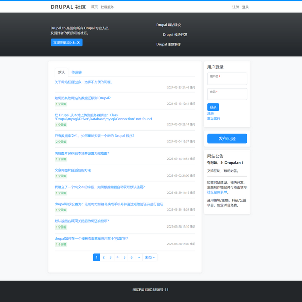 Drupal 社區(qū)是面向 Drupal 從業(yè)人員和愛好者的問答站點(diǎn)。有關(guān) Drupal 網(wǎng)站建設(shè)、Drupal 模塊開發(fā)和 Drupal 主題制作相關(guān)的問題都可以在這里交流問答。
