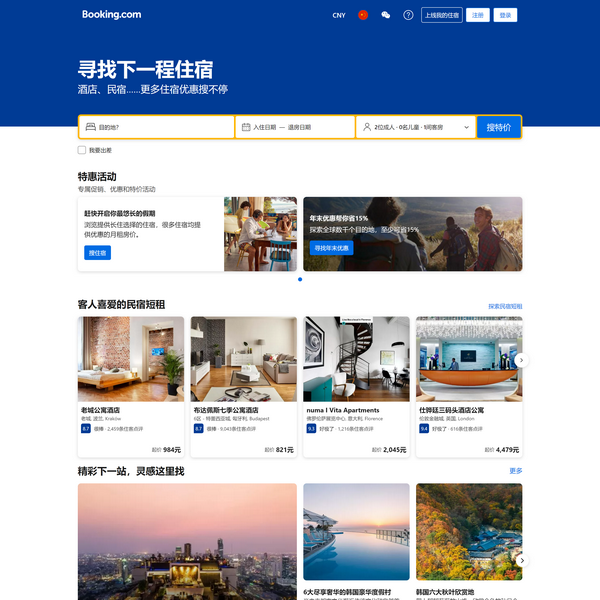 Booking.com繽客網提供全世界國內外120,000多個目的地酒店在線預訂且可享受超值優(yōu)惠。查詢符合您預算并提供***價格保證的酒店。
