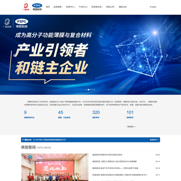 佛山佛塑科技集團股份有限公司是中國塑料新材料行業(yè)的龍頭企業(yè),成立于1988年6月。其前身是佛山市塑料皮革工貿(mào)集團股份公司,1994年更名為佛山塑料集團股份有限公司, 2000年5月在深圳證券交易所掛牌上市(證券簡稱:佛塑科技 證券代碼:000973),2009年廣新集團成為佛塑科技的控股股東,2011年公司更名為佛山佛塑科技集團股份有限公司。