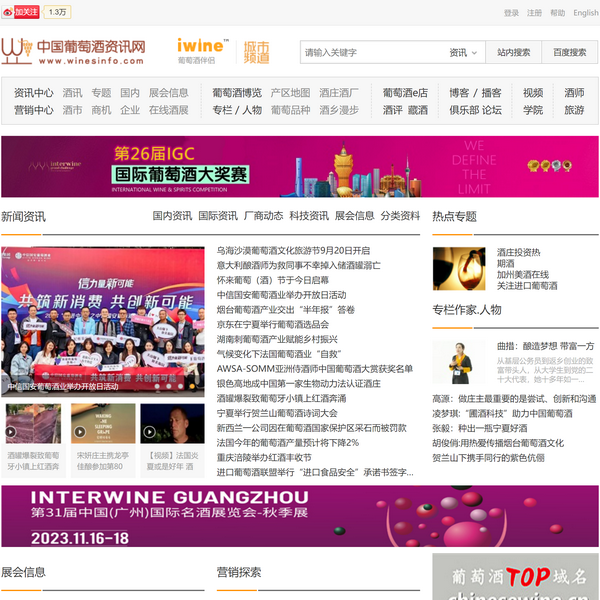葡萄酒資訊網(wǎng)主要欄目有葡萄酒新聞、營銷中心、葡萄酒俱樂部、葡萄酒博覽、葡萄酒e店、葡萄酒旅游、葡萄酒視頻、人物專欄、藏酒薄、侍酒師、葡萄酒博客、酒評(píng)、葡萄酒論壇、廠商動(dòng)態(tài)、英文站等等內(nèi)容,是目前國內(nèi)瀏覽量***的葡萄酒行業(yè)門戶網(wǎng)站。
