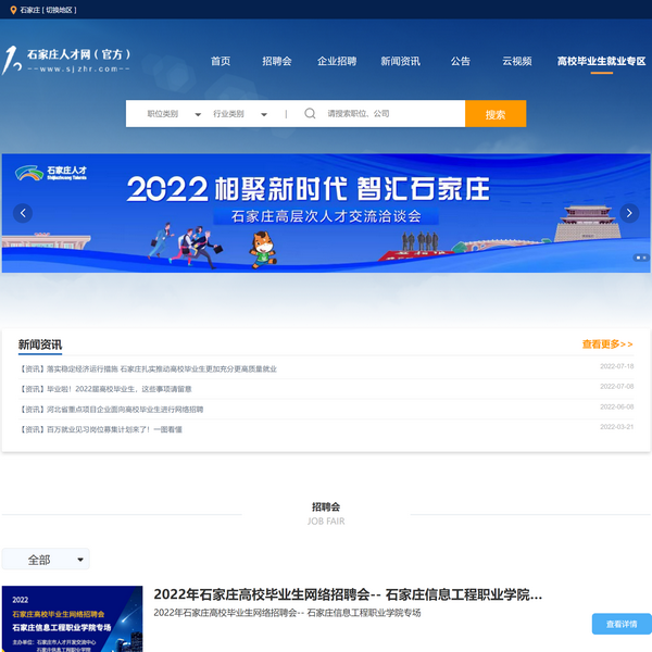 "石家莊人才網(wǎng)(官方)"由石家莊市人力資源和社會(huì)保障局主辦,石家莊市人才開發(fā)交流中心負(fù)責(zé)日常運(yùn)維與管理。網(wǎng)站于2020年8月正式上線運(yùn)行,原名為:石家莊高校畢業(yè)生公共招聘網(wǎng),2021年10月更名為"石家莊人才網(wǎng)(官方)"。