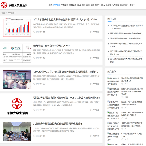 草根大學(xué)生活網(wǎng)是一個(gè)分享大學(xué)生活,大學(xué)信息,教育信息及互聯(lián)網(wǎng),科技,科學(xué)等前沿領(lǐng)域的信息網(wǎng)站。草根大學(xué)生活網(wǎng)傳遞科學(xué)正能量。