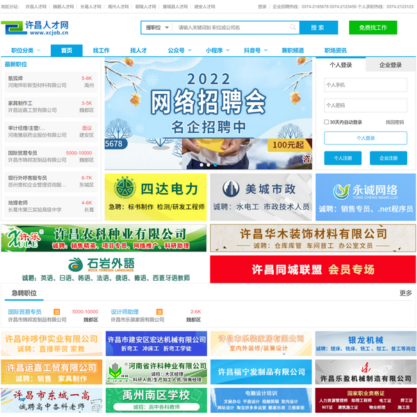 許昌人才網(wǎng)(www.xcjob.cn)是本土的許昌網(wǎng)絡(luò)招聘服務(wù)平臺(tái),提供職位搜索,簡歷管理,人才求職,企業(yè)招聘,校園招聘,許昌兼職,許昌求職招聘信息等!