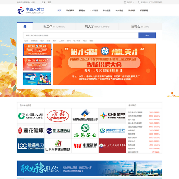 招聘、找工作、發(fā)布職位等各種信息!中原人才網(wǎng)是河南省人力資源和社會(huì)保障廳下屬河南省人才交流中心(河南省人才市場(chǎng)管理辦公室、河南省大中專畢業(yè)生就業(yè)指導(dǎo)中心)的***官方網(wǎng)站。中原人才網(wǎng)立足河南、輻射全國(guó),竭誠(chéng)為個(gè)人提供***最準(zhǔn)確的企業(yè)職位招聘信息,為企業(yè)提供人才信息,幫助個(gè)人求職者與企業(yè)搭建***的溝通平臺(tái)。