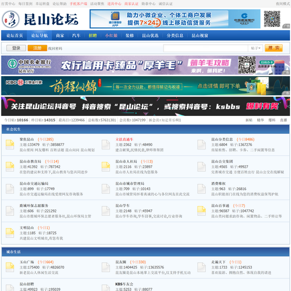 昆山論壇為新老昆山人提供昆山民生、昆山人才、娛樂休閑、昆山房產(chǎn)、昆山裝飾、昆山汽車、交友婚戀以及昆山視窗服務(wù)等BBS互動交流。