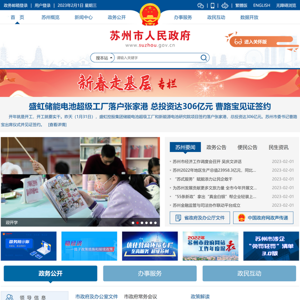 蘇州市人民政府網(wǎng)站。主辦單位:蘇州市人民政府辦公室,承辦單位:蘇州市政府門戶網(wǎng)站管理中心。