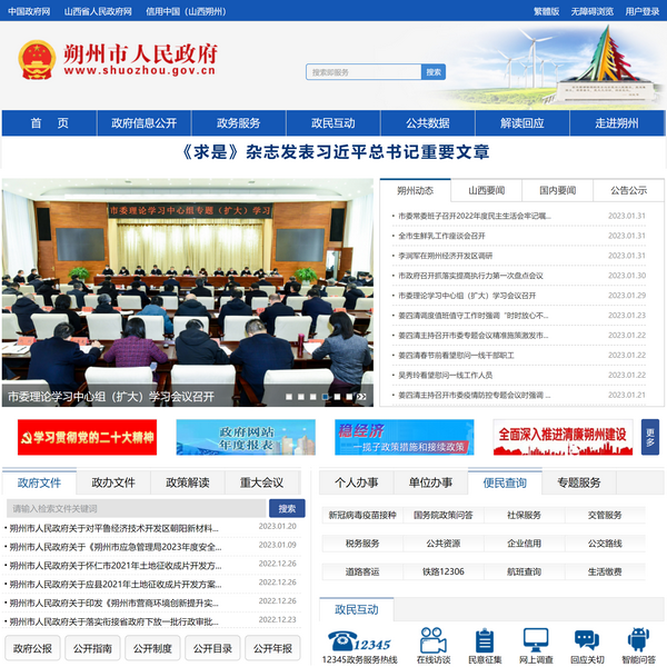 朔州市人民政府門戶網(wǎng)站是朔州市人民政府的官方門戶,網(wǎng)站的主要任務(wù)是宣傳黨和政府的方針、政策,展示朔州形象,發(fā)布各類政務(wù)信息、提供網(wǎng)上服務(wù)和實現(xiàn)公眾參與。