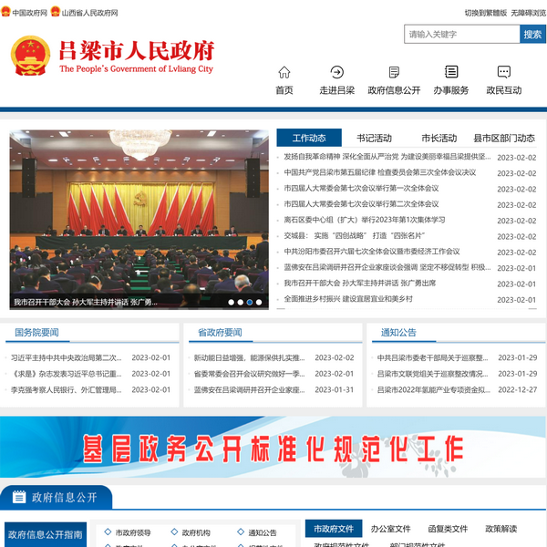 呂梁市政府門戶網(wǎng)是呂梁市人民政府各部門在互聯(lián)網(wǎng)上發(fā)布權(quán)威政府信息和提供在線服務(wù)的總平臺,是呂梁市人民政府各部門和區(qū)縣市政府子網(wǎng)站與公眾聯(lián)絡(luò)和交流的總窗口。