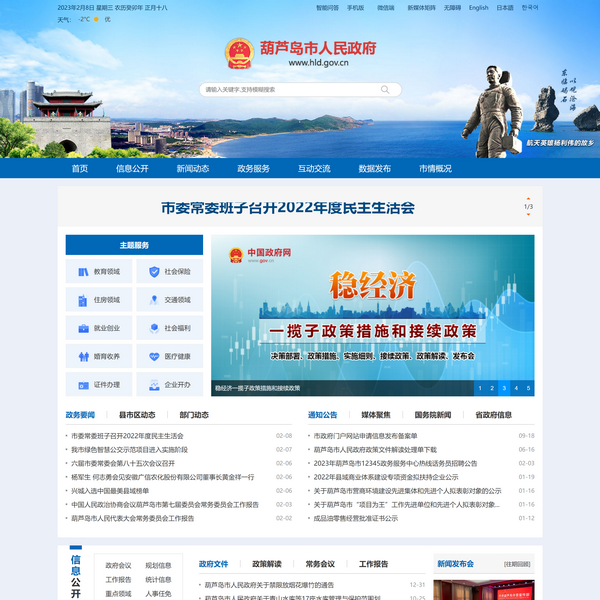 葫蘆島市人民政府網(wǎng)站。主辦單位:葫蘆島市人民政府辦公室,承辦單位:葫蘆島市信息中心。