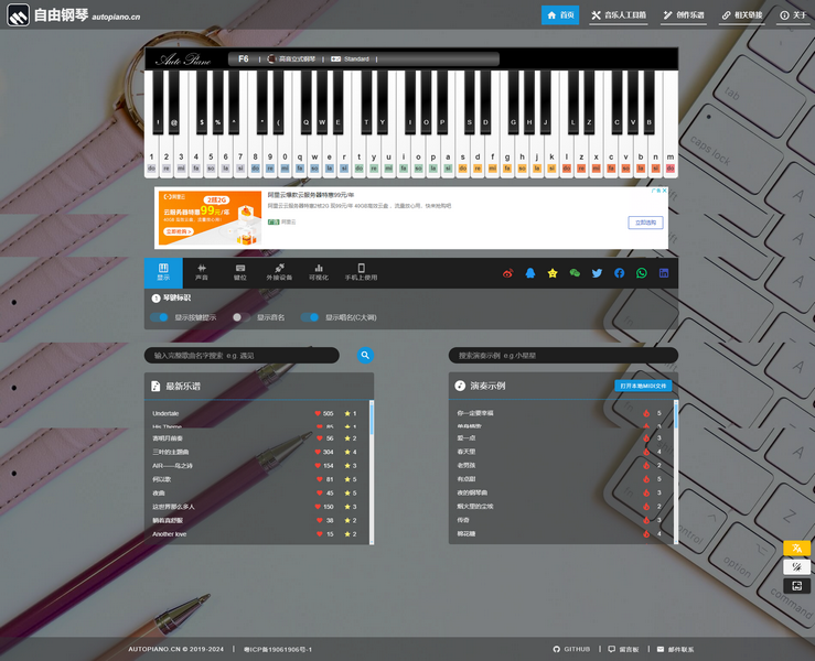 自由鋼琴(AutoPiano)是利用HTML5技術(shù)開(kāi)發(fā)的在線鋼琴應(yīng)用,致力于為鋼琴愛(ài)好者、音樂(lè)愛(ài)好者提供一個(gè)優(yōu)雅、簡(jiǎn)潔的平臺(tái),在學(xué)習(xí)工作之余可以在線彈鋼琴,享受音樂(lè)、生活的美好。自由鋼琴支持自動(dòng)演奏和手動(dòng)演奏,簡(jiǎn)單易學(xué),快來(lái)試試吧。