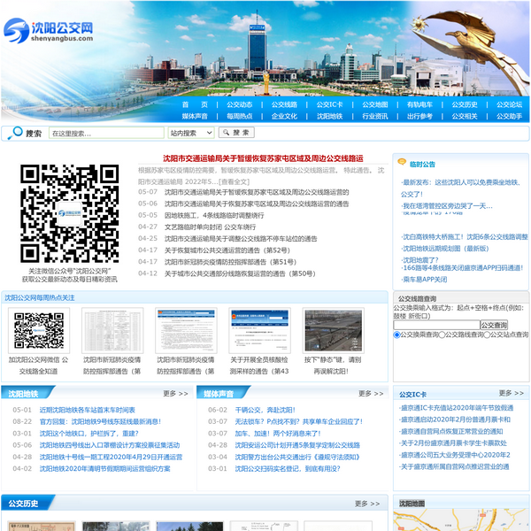 2004年2月,沈陽公交網(wǎng)正式建站。主頁為紅色基調,鮮明、活潑,設有“公交新聞、公交動態(tài)、公交線路、公交IC卡、公交論壇”等主要欄目。沈陽公交網(wǎng)為非官方網(wǎng)站,巴士迷、公交迷構成了網(wǎng)站的主要力量,網(wǎng)站以服務沈陽市民為宗旨,是沈城市民廣為熟知的行業(yè)門戶公益性網(wǎng)站。