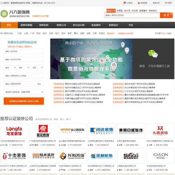 中國(guó)裝飾聯(lián)盟(八六裝飾網(wǎng))(www.86zsw.com)是寧波江東中藍(lán)網(wǎng)絡(luò)科技有限公司(www.86blue.cn)旗下網(wǎng)絡(luò)品牌。是最專業(yè)的裝飾、裝修、設(shè)計(jì)行業(yè)門戶網(wǎng)站。中國(guó)裝飾聯(lián)盟擁有最全的裝飾公司及建材企業(yè)、設(shè)計(jì)師數(shù)據(jù)庫(kù)、最精彩的裝修案例及裝修效果圖庫(kù)、最為豐富的裝修行業(yè)資訊,是裝修公司、設(shè)計(jì)公司、建材企業(yè)、監(jiān)理公司提供展示平臺(tái),提高公司形象、進(jìn)行品牌宣傳的專業(yè)網(wǎng)絡(luò)媒體。是業(yè)主與裝飾公司、設(shè)計(jì)師、建材企業(yè)的在線溝通平臺(tái),并為業(yè)主找裝修公司、找設(shè)計(jì)師、購(gòu)買建材商品、學(xué)習(xí)裝修知識(shí)提供參考幫助。