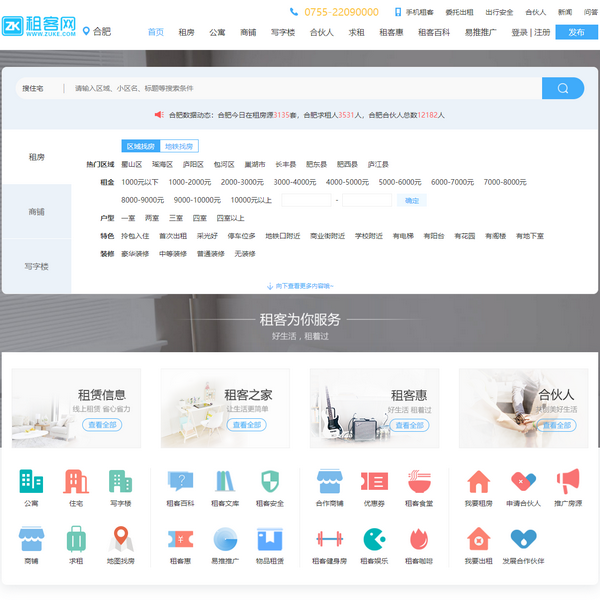 租客網(wǎng)zuke.com,免費為租客提供真實房源租賃信息平臺,可發(fā)布房屋租賃信息、公寓出租信息、出租信息、求租信息、合租信息,提供房屋托管服務(wù),免費提供房產(chǎn)SAAS系統(tǒng),通過租客惠為租客提供折扣信息。