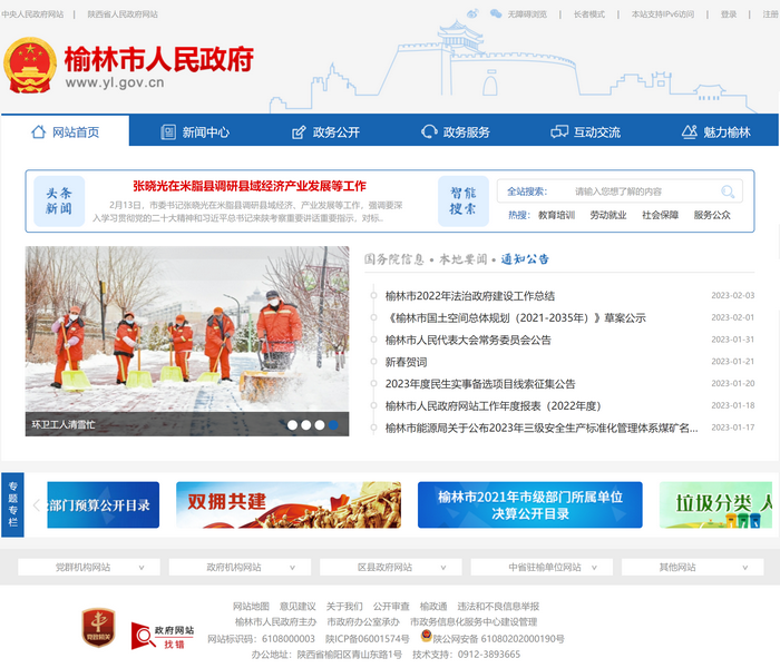 市政府門戶網(wǎng)站由榆林市人民政府主辦,市政府辦公室承辦,市政府政務(wù)信息化服務(wù)中心建設(shè)、維護(hù)、管理。按照《榆林市政府網(wǎng)站管理規(guī)定》,市政府門戶網(wǎng)站由市政務(wù)信息化服務(wù)中心負(fù)責(zé)信息發(fā)布、日常維護(hù)和運(yùn)行管理工作,并由市政務(wù)信息化服務(wù)中心負(fù)責(zé)、聯(lián)系、指導(dǎo)和協(xié)調(diào)與市政府各部門和縣區(qū)政府網(wǎng)站。任何單位和個(gè)人不得以榆林市政府門戶網(wǎng)站的名義發(fā)布信息和聯(lián)系業(yè)務(wù)。