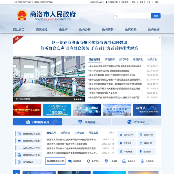 商洛市政府門戶網站(www.shangluo.gov.cn)是商洛市人民政府在國際互聯網上發(fā)布信息、解讀回應、提供互動交流和辦事服務的綜合服務平臺。本網站由商洛市人民政府辦公室負責建設和管理。