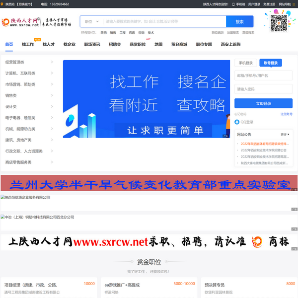 歡迎訪問陜西人才網(wǎng),請(qǐng)認(rèn)準(zhǔn)域名https://www.sxrcw.net,人事代理,勞務(wù)派遣, 陜西人才招聘會(huì), 陜西地區(qū)***的招聘求職網(wǎng)站,陜西求職***人才網(wǎng)站,擁有30多萬人才庫(kù)供企業(yè)查詢,數(shù)萬家企業(yè)供人才挑選。