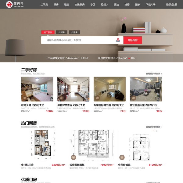 長春住房寶提供真實(shí)房源的房產(chǎn)信息平臺,為長春買房、長春二手房、長春新房購買以及長春租房需求的用戶提供便捷服務(wù).同時(shí)有智能找房、vr看房等先進(jìn)科技找房功能等你來體驗(yàn),想在長春買房、購買長春二手房、新房、租房,想了解到一手房產(chǎn)資訊、房價(jià)行情,就來長春住房寶找房吧!