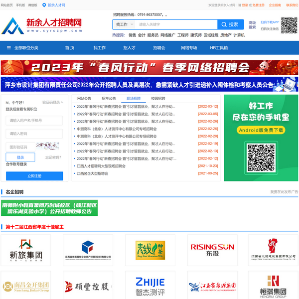 【新余人才網(wǎng)】新余聚才人力資源市場官網(wǎng),新余人才招聘網(wǎng)是招聘與求職的***網(wǎng)站,擁有80萬新余人才庫供新余招聘企業(yè)查詢挑選。
