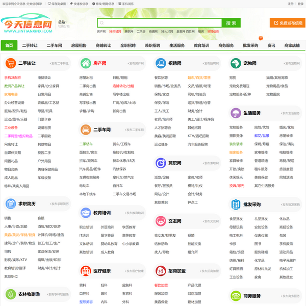 今天信息網(wǎng)—分類信息,涉及免費(fèi)發(fā)布房產(chǎn)、租房、招聘、兼職、教育培訓(xùn)、二手交易、百姓網(wǎng)生活等分類信息,可以查看和免費(fèi)發(fā)布信息,是類似58同城網(wǎng)|信息港|論壇一樣的網(wǎng)站!