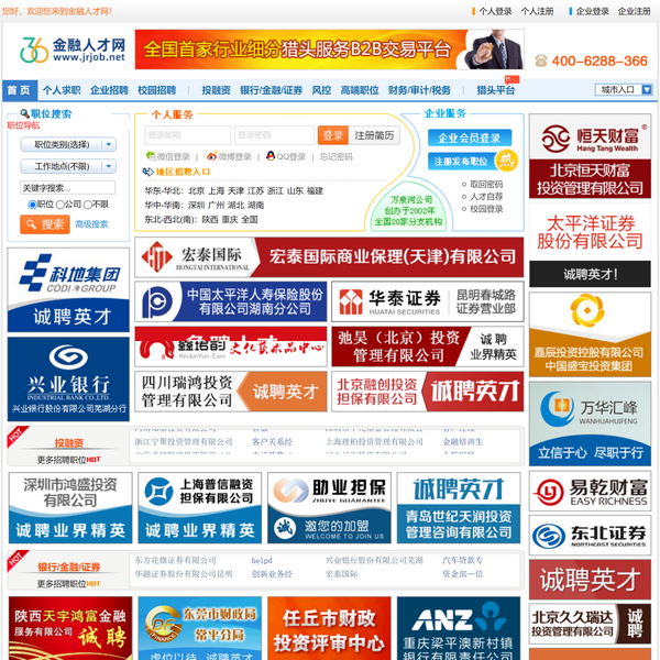 中國金融人才網(wǎng)www.jrjob.net 創(chuàng)辦于 2005 年,是目前中國專業(yè)金融人才招聘網(wǎng)站之一,專門面向投融資機構(gòu)、互聯(lián)網(wǎng)金融、銀行、證券、基金類企業(yè)提供專業(yè)金融人才招聘服務(wù)。2015年5月,中國金融人才網(wǎng)全面升級,廣告全面投放...... 至 2015 年 5月止中國金融人才網(wǎng)擁有56萬名專業(yè)金融人才,超過 10000家金融企業(yè)通過 jrjob.net 進行招聘,并取得良好的招聘效果。