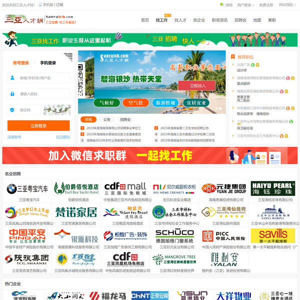 三亞人才網(wǎng)是專(zhuān)注于三亞本地人才招聘,具備人才服務(wù)許可資質(zhì)正規(guī)人才網(wǎng)站!提供三亞地區(qū)全面人才招聘信息,海南三亞人才招聘、人才人事等綜合信息服務(wù)。是您三亞招聘的理想選擇!