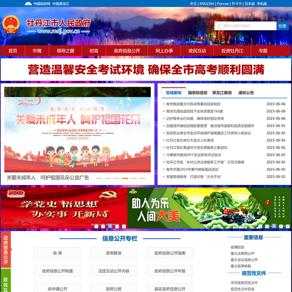 牡丹江政府門戶網(wǎng)站是牡丹江市人民政府對(duì)外的窗口!
