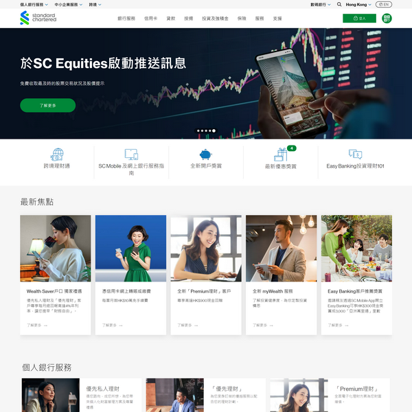 渣打銀行香港提供多元化的個人及商業(yè)銀行服務(wù),包括信用卡、貸款、儲蓄、按揭、投資及保險(xiǎn)等專業(yè)理財(cái)方案,全面滿足個人及企業(yè)需求。