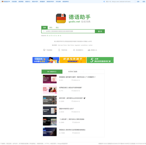 『德語助手』權威的德語在線詞典,為您提供德語翻譯、德語動詞變位、德語輸入法、德語學校課程學習、德語題庫字典、德語背單詞、德語入門聽力發(fā)音等。