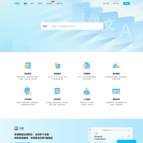 愛詞霸英語為廣大英語學習愛好者提供金山詞霸、在線詞典、在線翻譯、英語學習資料、英語歌曲、英語真題在線測試、漢語查詞等服務,愛詞霸英語在線查詞和在線翻譯頻道致力于為您提供優(yōu)質的在線查詞及在線翻譯服務。