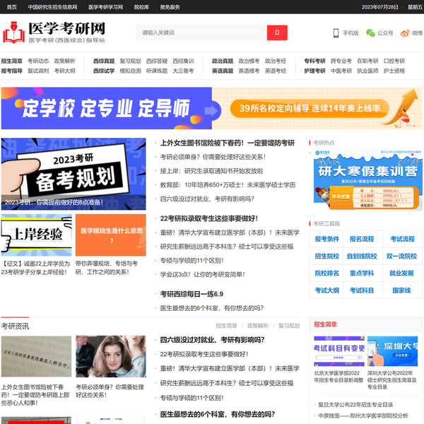 醫(yī)學考研網是全國較早較全面從事西綜備考指導網站,網站及時更新醫(yī)學院校招生簡章及報考指導,多年西綜考研真題、思維導圖、課程可在線學習。