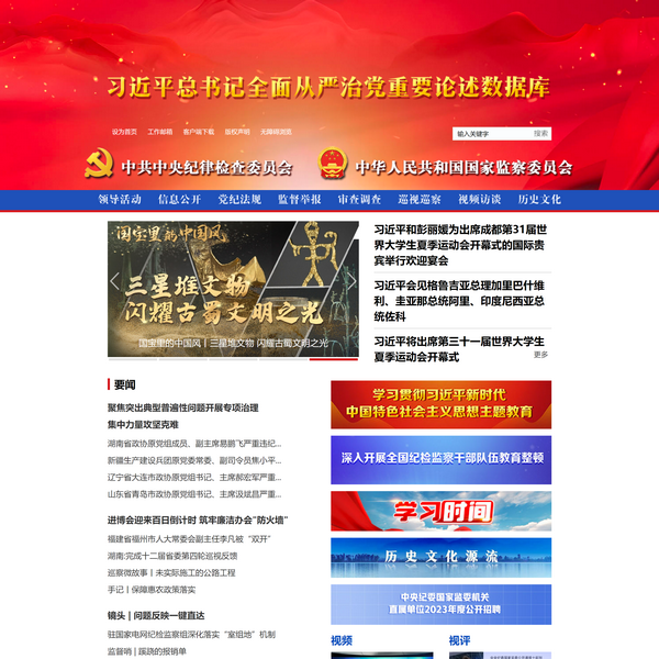 網(wǎng)站功能。一、宣傳貫徹***新時代中國特色社會主義思想,建立***總書記全面從嚴治黨重要論述數(shù)據(jù)庫。二、及時發(fā)布黨中央和中央紀委國家監(jiān)委的重大部署、重要會議、重要通報,***時間發(fā)布有關監(jiān)督執(zhí)紀問責、監(jiān)督調(diào)查處置信息等。三、權威解讀全面從嚴治黨、黨風廉政建設和反腐敗斗爭的形勢任務、決策部署、政策法規(guī)。四、展示各地區(qū)各部門全面從嚴治黨、黨風廉政建設和反腐敗斗爭的進展成效、創(chuàng)新實踐、成果經(jīng)驗等。五、開展歷史文化宣傳,涵養(yǎng)文化自覺、培育文化自信。六、開展互動交流,開辟留言板等專欄,主動接受網(wǎng)民對全面從嚴治黨、黨風廉政建設和反腐敗工作的意見、建議、咨詢等,搭建紀委監(jiān)委機關與網(wǎng)民溝通交流的平臺。七、接受網(wǎng)絡信訪舉報,在首頁設置12388舉報、反腐敗國際追逃追贓舉報和黨風政風監(jiān)督舉報版塊,為群眾順暢、安全舉報提供便捷通道。八、提供專業(yè)數(shù)據(jù)服務,建立與全面從嚴治黨相關的常用黨內(nèi)法規(guī)制度庫和國家法律法規(guī)庫等數(shù)據(jù)庫,內(nèi)容系統(tǒng),權威實用。