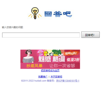 百科”。回答吧網(wǎng)站信息查詢(xún),網(wǎng)址鏈接:http://www.huida8.com/;備案編號(hào):京ICP備13048181號(hào)-1;站點(diǎn)標(biāo)簽:回答吧,精準(zhǔn)營(yíng)銷(xiāo),店鋪推廣,淘寶店鋪推廣" />