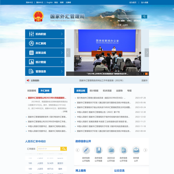 國(guó)家外匯管理局門戶網(wǎng)站。