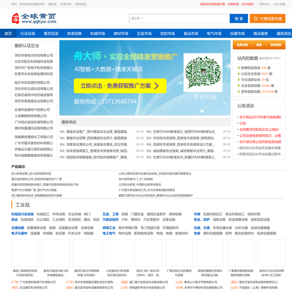 全球黃頁網(wǎng)是一個(gè)免費(fèi)發(fā)布信息的B2B電子商務(wù)平臺,提供供求、展會信息,歡迎企業(yè)免費(fèi)加入,免費(fèi)發(fā)布供求信息,宣傳你的企業(yè)和產(chǎn)品,我們將為企業(yè)打造一個(gè)誠信專業(yè)的B2B電子商務(wù)平臺。