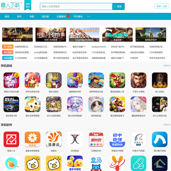 懶人網(wǎng)專注于提供手機(jī)游戲、手機(jī)軟件、網(wǎng)頁素材下載,其內(nèi)容涵蓋手機(jī)游戲,軟件應(yīng)用,安卓游戲,安卓軟件,游戲素材,應(yīng)用素材,矢量圖,網(wǎng)頁JS代碼,讓任何一個用戶都能輕松找到自己想要的內(nèi)容!