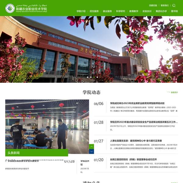 新疆農(nóng)業(yè)職業(yè)技術(shù)學(xué)院坐落于絲綢之路經(jīng)濟(jì)帶核心區(qū),素有“西域咽喉”美譽(yù)之稱的昌吉市,是一所舉辦高等職業(yè)教育的公辦全日制普通高等學(xué)校。學(xué)院前身是創(chuàng)建于1958年的昌吉農(nóng)業(yè)學(xué)校,1988年隸屬自治區(qū)農(nóng)業(yè)廳改名為新疆農(nóng)業(yè)學(xué)校,2000年升格為新疆農(nóng)業(yè)職業(yè)技術(shù)學(xué)院,2008年與原自治區(qū)農(nóng)業(yè)干部學(xué)校合并,整合為現(xiàn)今的新疆農(nóng)業(yè)職業(yè)技術(shù)學(xué)院。2022年2月,自治區(qū)農(nóng)業(yè)農(nóng)村廳黨組整合廳屬科教資源,將廳屬科研單位與學(xué)院一體化整合,實(shí)現(xiàn)產(chǎn)科教資源共享、優(yōu)勢互補(bǔ),快速提升自治區(qū)“三農(nóng)”人才培養(yǎng)質(zhì)量和鄉(xiāng)村振興、農(nóng)業(yè)農(nóng)村現(xiàn)代化科技服務(wù)支撐能力,開創(chuàng)了全國職業(yè)院校與科研院所融合發(fā)展的先河。