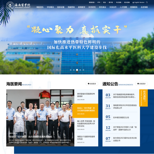 海南醫(yī)學(xué)院是海南自由貿(mào)易港內(nèi)***一所公辦醫(yī)學(xué)院,前身是創(chuàng)立于1947年的海強(qiáng)醫(yī)事技術(shù)學(xué)校和創(chuàng)立于1948年的私立海南大學(xué)醫(yī)學(xué)院,辦學(xué)70余年來(lái),為國(guó)家培養(yǎng)了七萬(wàn)余名高素質(zhì)醫(yī)藥衛(wèi)生人才,是國(guó)家***批卓越醫(yī)生教育培養(yǎng)計(jì)劃項(xiàng)目試點(diǎn)高校、教育部***批專(zhuān)業(yè)綜合改革試點(diǎn)本科院校、海南省特色高水平大學(xué)建設(shè)單位、國(guó)家緊急醫(yī)學(xué)救援隊(duì)(海南)牽頭單位、國(guó)家水上應(yīng)急教育培訓(xùn)基地、國(guó)家海上緊急醫(yī)學(xué)救援基地,為博士學(xué)位授予單位。