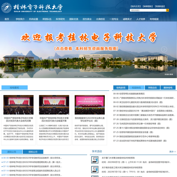 桂林電子科技大學坐落于世界著名的風景游覽城市和中國歷史文化名城桂林市,是國家工業(yè)和信息化部與廣西壯族自治區(qū)人民政府共建高校、國家國防科技工業(yè)局與廣西壯族自治區(qū)人民政府共建高校、國家“中西部高?;A能力建設工程”入選高校。