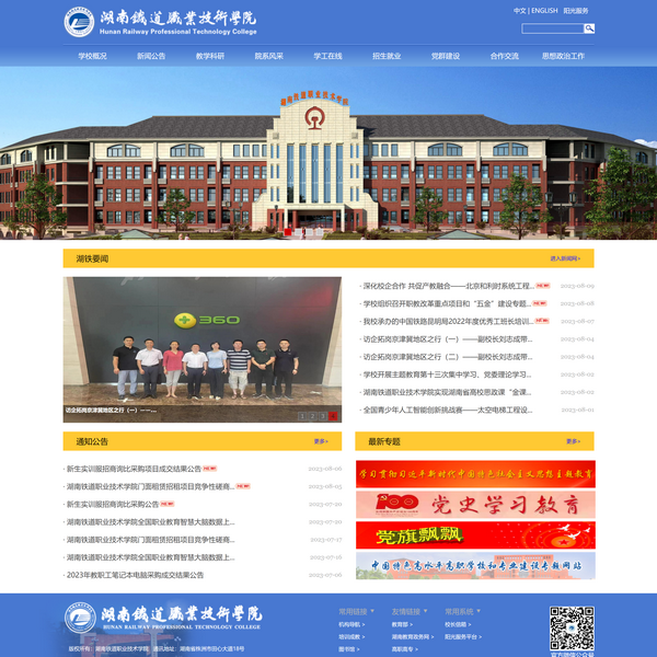 湖南鐵道職業(yè)技術學院始建于1951年,是一所以工科專業(yè)為主,文管經等專業(yè)共同發(fā)展的公辦綜合性高職院校。2006年立項國家首批示范性高職院校,2015年7月立項湖南省首批卓越院校建設單位,2019年入選國家優(yōu)質高職院校,2019年入選中國特色高水平高職學校建設單位,為國家和湖南地方經濟社會發(fā)展作出了積極貢獻。學校占地面積1000.93畝、總建筑面積33.75萬平方米,現有師生14000余人。