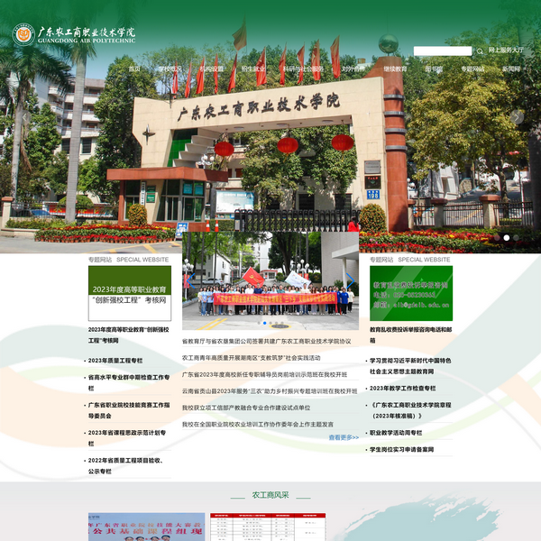 廣東農工商職業(yè)技術學院是一所普通高等公辦全日制??圃盒!W校創(chuàng)建于1952年,前身為葉劍英元帥在兼任華南墾殖局局長期間創(chuàng)辦的華南墾殖局機務學校,1977 年經廣東省革命委員會批準成立廣東省農墾干部學校,1984年經廣東省人民政府批準成立廣東農墾管理干部學院,開始舉辦大專學歷教育,1989年經原農業(yè)部批準掛牌“農業(yè)部華南農墾干部培訓中心”,1993 年更名為廣東農工商管理干部學院。2000年更名為廣東農工商職業(yè)技術學院。
