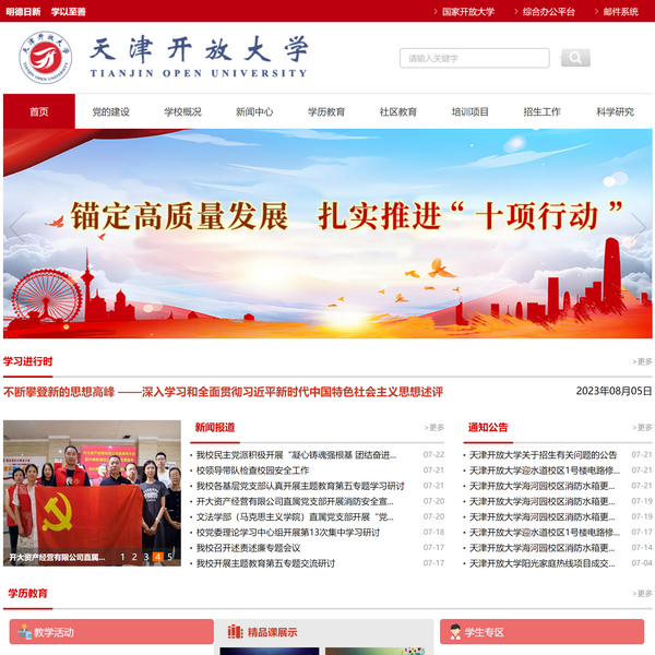 天津開放大學成立于1958年,是我國***所以廣播函授為主要教學手段的遠程教育高等學校。學校經(jīng)歷了天津紅專廣播函授大學、天津市廣播函授大學和天津廣播電視大學三個階段。2020年12月26日經(jīng)天津市人民政府批準,學校更名為天津開放大學。建校60多年來,累計開設(shè)9個學科門類80個本、專科專業(yè),共培養(yǎng)本專科畢業(yè)生近40萬人,開展社會培訓和終身學習服務(wù)5400萬人次。