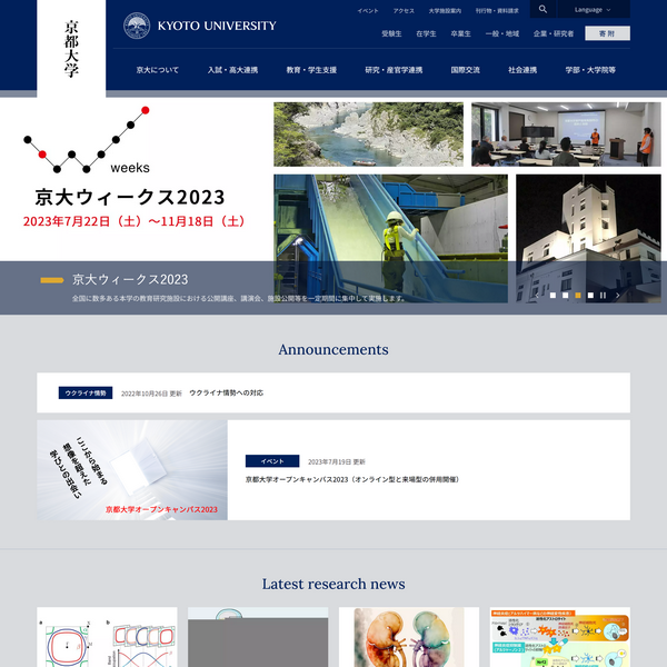 京都大學(xué)のオフィシャルサイトです。學(xué)部?大學(xué)院、研究所等の案內(nèi)や、入試?入學(xué)案內(nèi)、教育研究活動、キャンパスの***情報など、京都大學(xué)に関する情報をご覧いただけます。