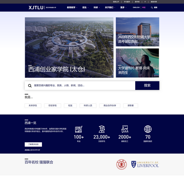 西交利物浦大學(xué)(XJTLU,簡(jiǎn)稱“西浦”) 是經(jīng)中國(guó)教育部批準(zhǔn),由西安交通大學(xué)和英國(guó)利物浦大學(xué)合作創(chuàng)立的,具有獨(dú)立法人資格和鮮明特色的新型國(guó)際大學(xué)。她是中國(guó)目前規(guī)模***的中外合作大學(xué),以理工管起步,強(qiáng)強(qiáng)合作,擁有中華人民共和國(guó)學(xué)士學(xué)位和英國(guó)利物浦大學(xué)學(xué)位授予權(quán)。