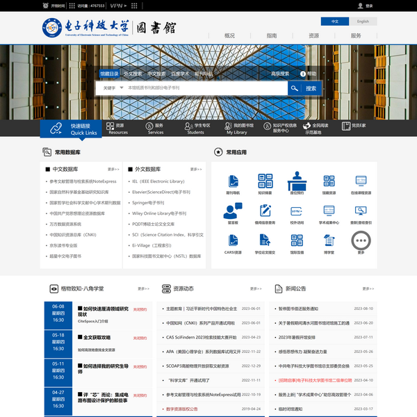 電子科技大學(xué)圖書館(https://www.lib.uestc.edu.cn/)已被三體網(wǎng)址大全收錄在網(wǎng)址百科信息庫中,所在分類目錄為”其他分類 > 院校 > 綜合性大學(xué)“目錄,百科頁面地址:http://m.fashionflairtrend.com/siteinfo/4988.html。三體網(wǎng)址大全匯聚國內(nèi)優(yōu)秀網(wǎng)站大全,是提升網(wǎng)站外部鏈接流行度以及影響力的權(quán)威分類目錄及收錄提交入口,歡迎廣大優(yōu)質(zhì)網(wǎng)站提交收錄申請。