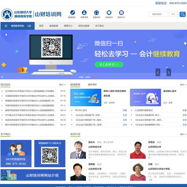 山東財經(jīng)大學(xué)山財培訓(xùn)網(wǎng)創(chuàng)立于2007年,網(wǎng)站依托山東財經(jīng)大學(xué)雄厚的教學(xué)資源,采用先進的網(wǎng)上教學(xué)平臺,專注會計培訓(xùn),先后開通了會計從業(yè)資格考試培訓(xùn)(會計證考試培訓(xùn))、會計職稱考試培訓(xùn)、會計人員繼續(xù)教育、會計實務(wù)培訓(xùn)等培訓(xùn)班。