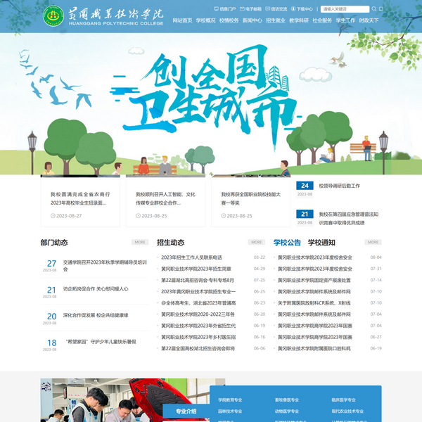 黃岡職業(yè)技術(shù)學院是1999年經(jīng)教育部批準組建的一所公立全日制高等職業(yè)院校,全國文明單位,國家“雙高計劃”A類高水平專業(yè)群建設(shè)學校,國家優(yōu)質(zhì)高職院校,國家優(yōu)秀骨干高職院校,教育部高職高專人才培養(yǎng)工作水平評估優(yōu)秀院校,全國首批現(xiàn)代學徒制試點高職院校,第六屆黃炎培職業(yè)教育優(yōu)秀獎學校,全國職業(yè)院校魅力校園;全國“五四紅旗團委”單位,全國“高等職業(yè)院校服務(wù)貢獻50強”,全國“職業(yè)院校教學管理50強案例單位”;***高技能人才培養(yǎng)基地,***職業(yè)教育“雙師型”教師培訓基地,全國高職院校就業(yè)工作先進示范單位,中國職業(yè)教育與就業(yè)能力百強院校。學校多次被評為湖北省職業(yè)教育先進單位、大學生思想政治教育工作先進高校、征兵工作先進單位、學生資助工作典型單位、平安校園;是湖北省依法治校示范校、湖北省職業(yè)教育學會教學工作委員會主任單位、學生宿舍管理先進單位、綠化管理先進高校。