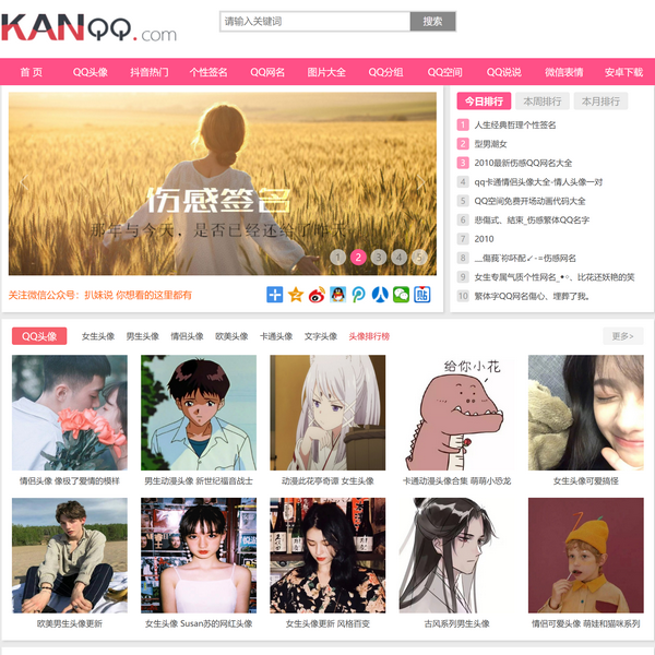 KanQQ個性網(wǎng)專注于分享QQ個性內(nèi)容,我們提供***最炫的QQ頭像、QQ網(wǎng)名、QQ個性簽名、QQ分組、QQ皮膚、QQ說說、QQ表情、QQ日志等QQ周邊個性內(nèi)容,還有最全的唯美圖片、QQ心情日志等QQ空間素材等您發(fā)現(xiàn)和使用,看QQ個性網(wǎng)是您裝扮個性QQ的***網(wǎng)站。