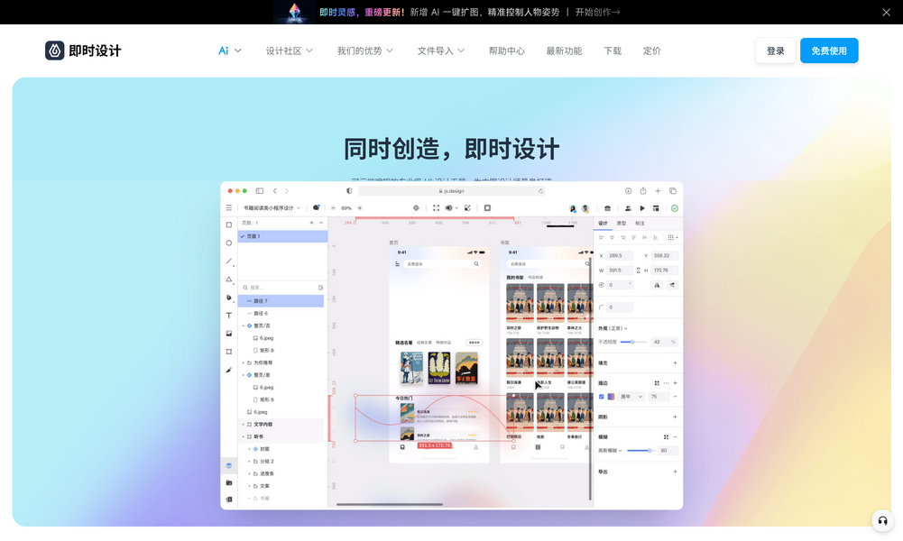即時(shí)設(shè)計(jì)是一款支持在線(xiàn)協(xié)作的專(zhuān)業(yè)級(jí) UI 設(shè)計(jì)工具,支持 Sketch、Figma、XD 格式導(dǎo)入,海量?jī)?yōu)質(zhì)設(shè)計(jì)資源即拿即用。支持創(chuàng)建交互原型、獲取設(shè)計(jì)標(biāo)注,為產(chǎn)設(shè)研團(tuán)隊(duì)提供一站式協(xié)同辦公體驗(yàn)。