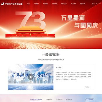 中國銀河證券股份有限公司,中國證券行業(yè)領(lǐng)先的綜合金融服務(wù)提供商(股票代碼:601881.SH,06881.HK)。實際控制人為中央?yún)R金投資有限責(zé)任公司。公司在國內(nèi)擁有證券市場業(yè)務(wù)全牌照以及覆蓋較廣的營業(yè)網(wǎng)絡(luò),海外業(yè)務(wù)遍及全球9個國家和地區(qū)。